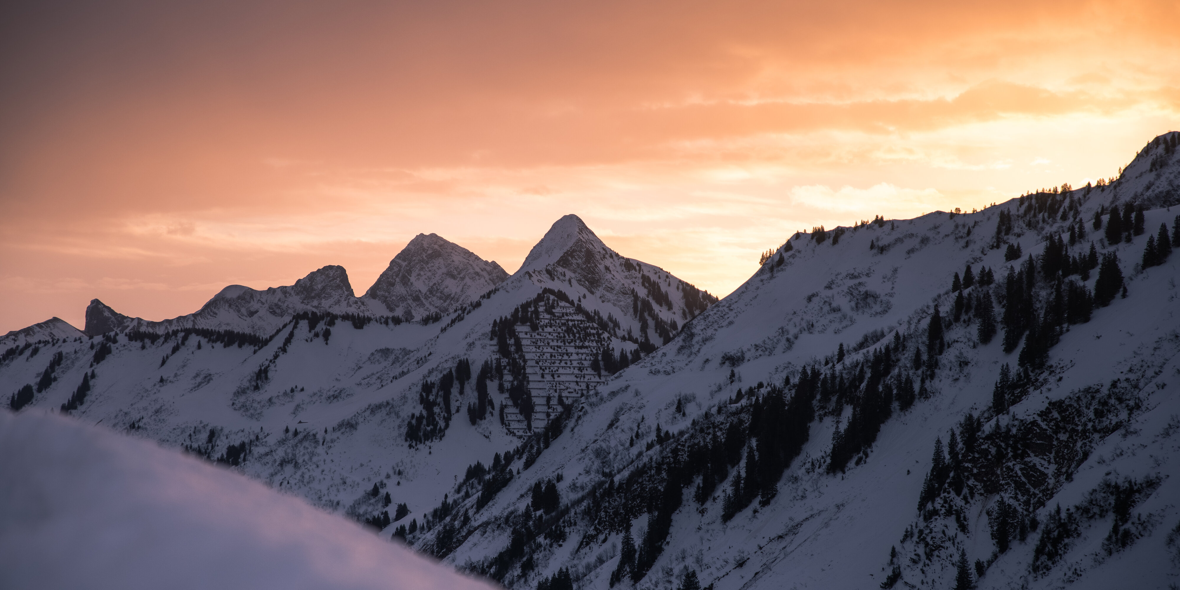An der Grenze zwischen den Gemeinden Fontanella und Sonntag, auf rund 1.100 Metern Höhe, erwartet dich ein atemberaubender Ausblick auf die imposante Bergkette des Biosphärenparks Großes Walsertal.