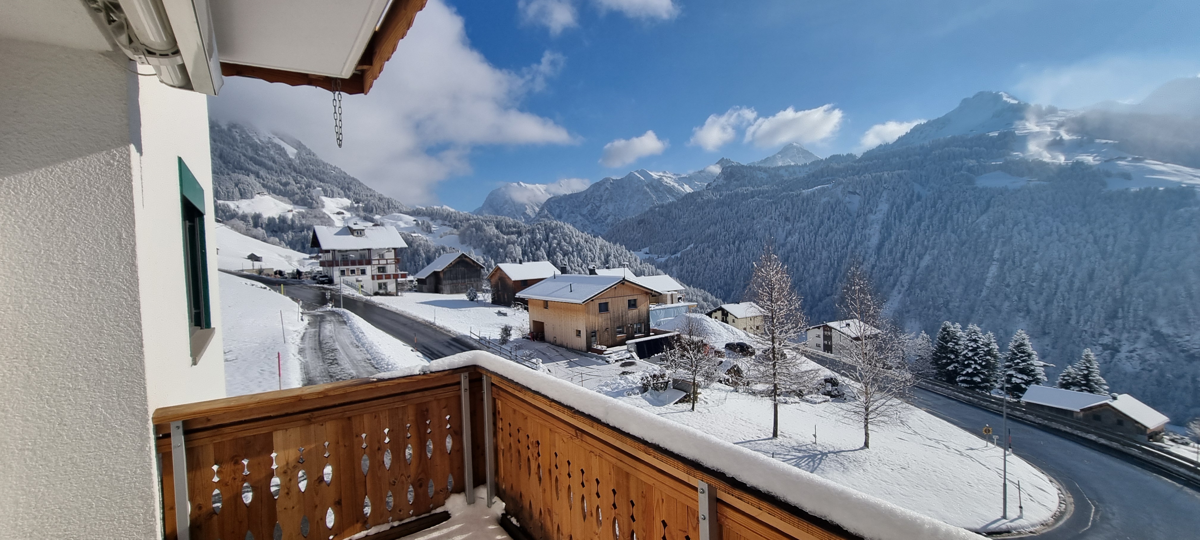 Parkplatz/Carport, Bushaltestelle in der Nähe und die Aussicht aufs Große Walsertal: alles da, ohne Stress.
